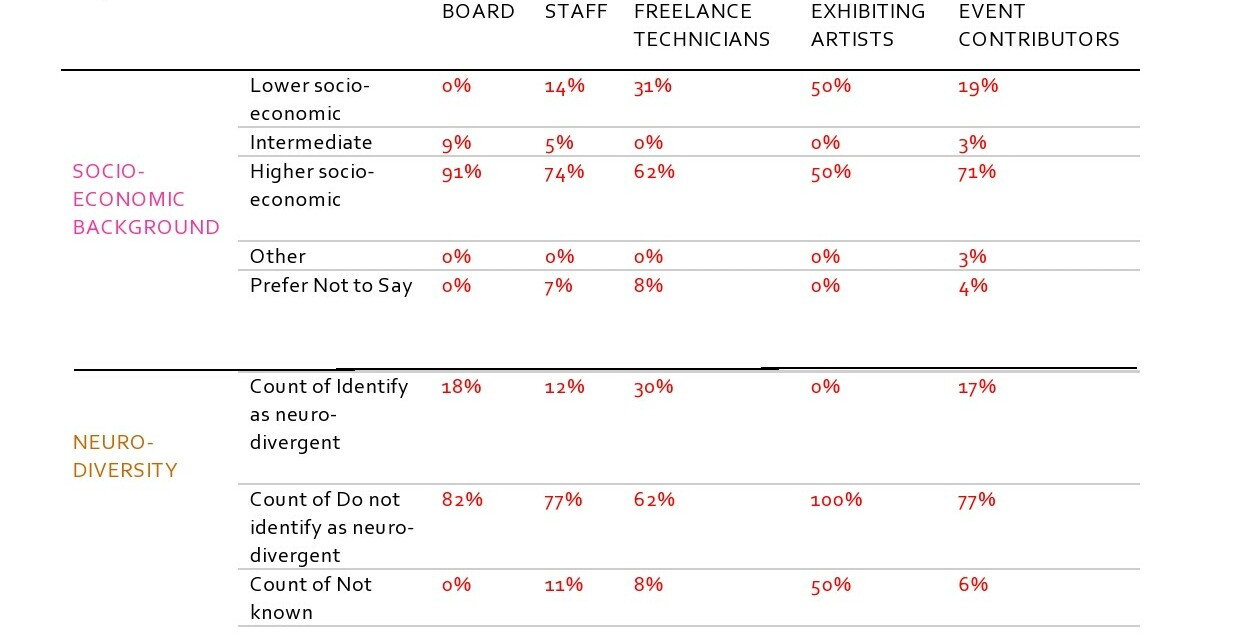 • Annually publishing the demographics of our staff, trustees, audiences and the various freelance workers and practitioners (artists, curators, technicians, etc.) we employ and work with. You can download a pdf copy of these demographics.