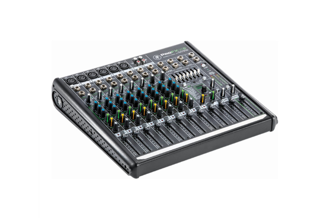 Line and Mic inputs, Stereo and Aux outputs. 16 built-in effects such as reverb and room sound, 6-channel graphic EQ.