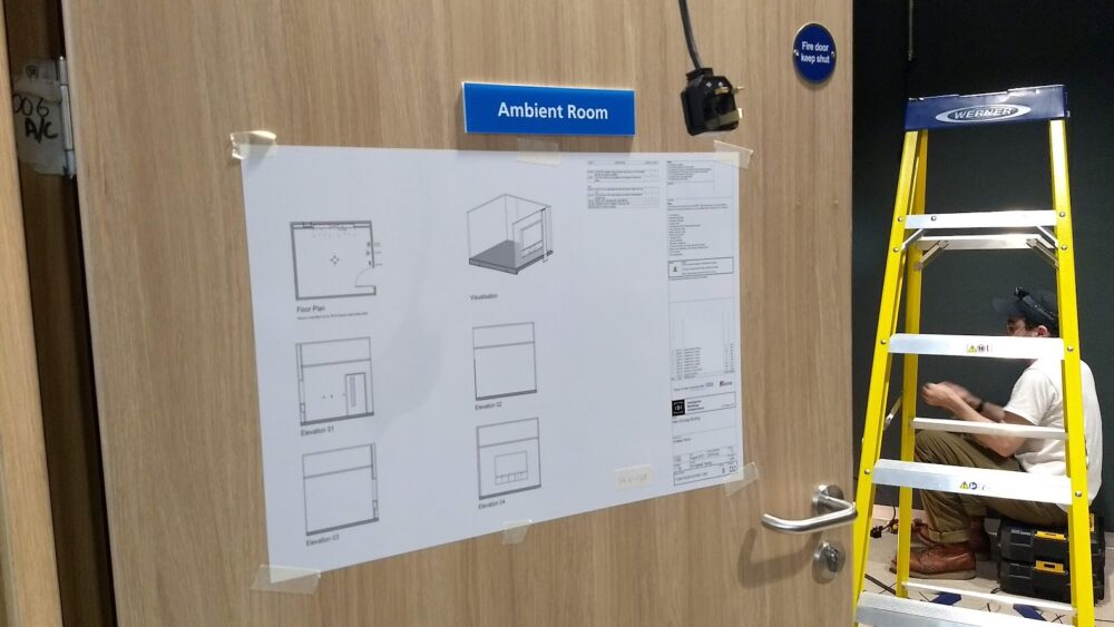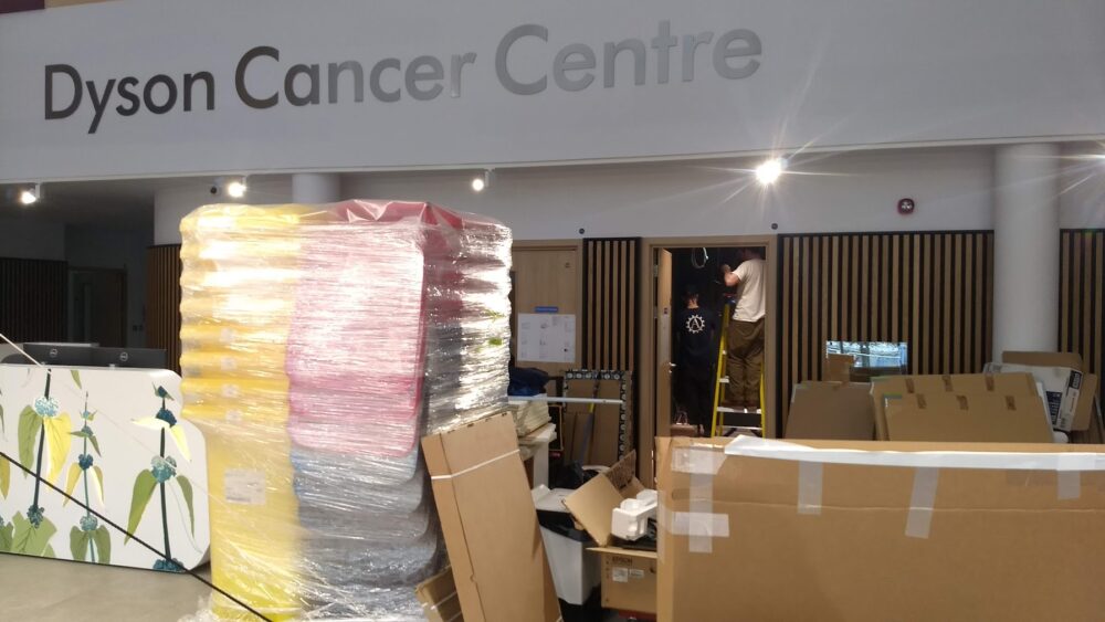 Dyson Cancer Centre, Ambient Room, AV fit out in-progress.