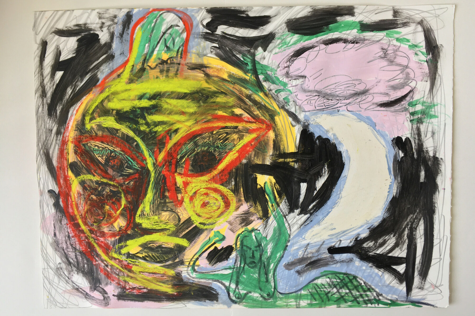 Lucy Stein, El Sol (2021) Underglaze paint, acrylic, pencil, ink, Sennelier pastel on watercolour paper. Courtesy the artist and Gregor Staiger, Zurich