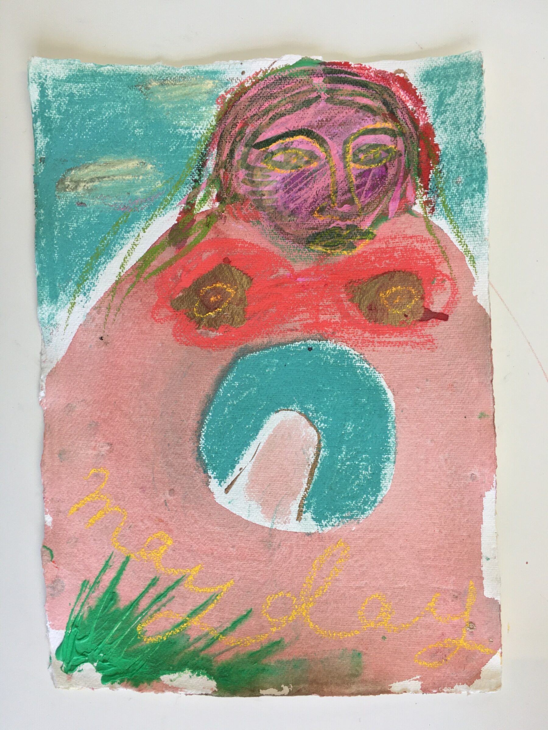 Lucy Stein, Neolithic Feminism (2021) Underglaze paint, ink, Sennelier pastel on handmade Indian paper. Courtesy the artist and Gregor Staiger, Zurich