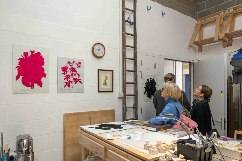 ‘What I’m thinking of showing at Open Studios is probably the Redouté prints, which I’ve intervened on. The Swati pink is particularly interesting because Swat resisted the incursion of the British Raj. I did a public art project last year where everyone made porcelain roses, but of course everyone makes a self portrait – they’re all entirely different.’
