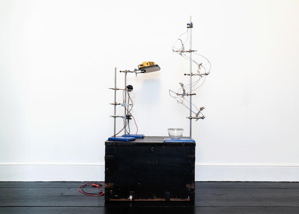 In his work, Over-Papatzaneteas uses data to drive interactive sculptures and installations, acting as a means of provocation for the viewer, shifting the scientific framework into an emotive aesthetic form.