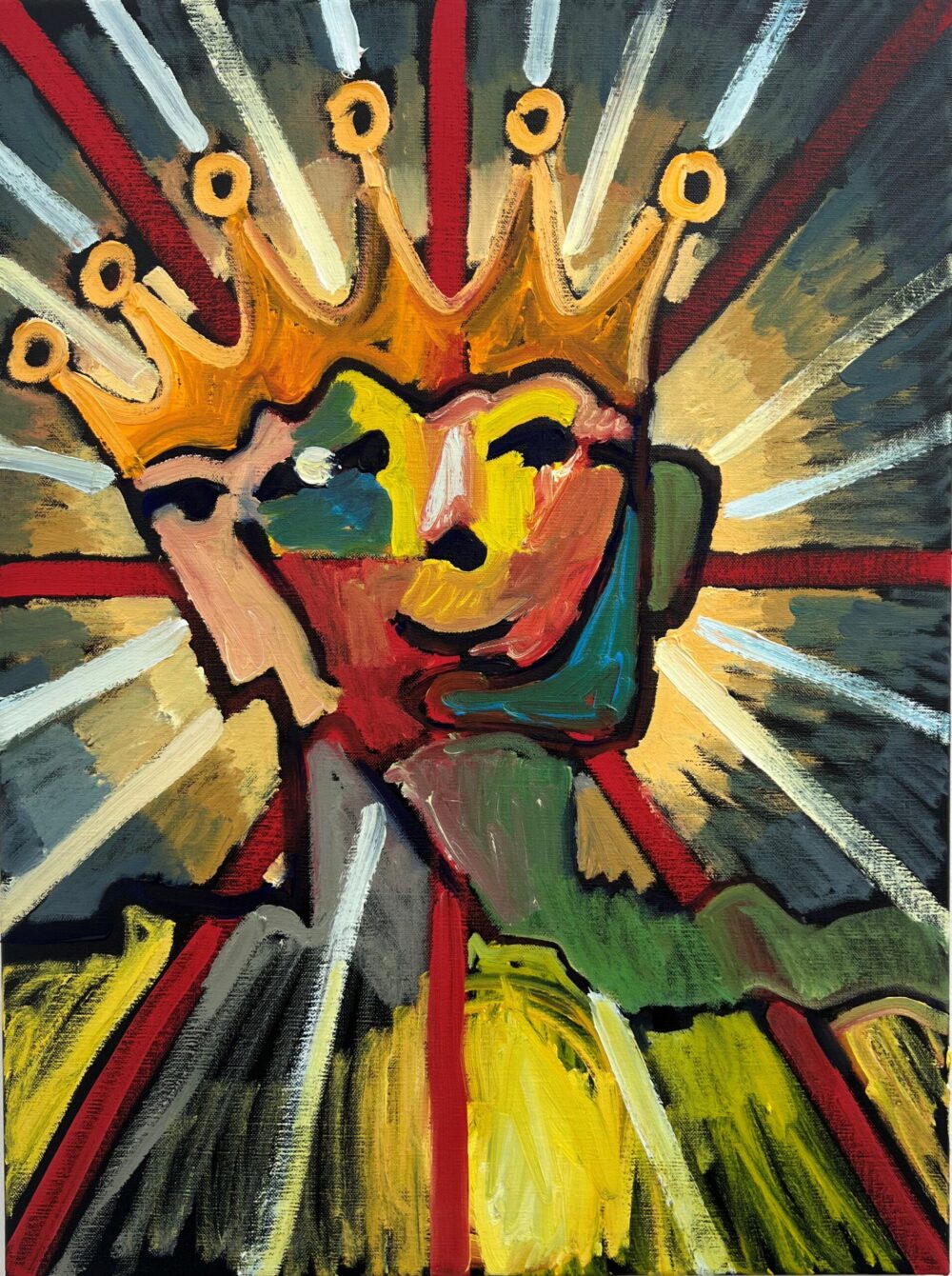 His therapeutic art alias, @geezygee.dageeza, is centred on play, experimentation, and emotional healing through painting. This body of work includes the Care Home Series, created while working as a carer, which celebrates the individuality and dignity of people with learning disabilities. Other paintings, often seen behind misted mirrors and rippled glass, explore impermanence and fragmentation.