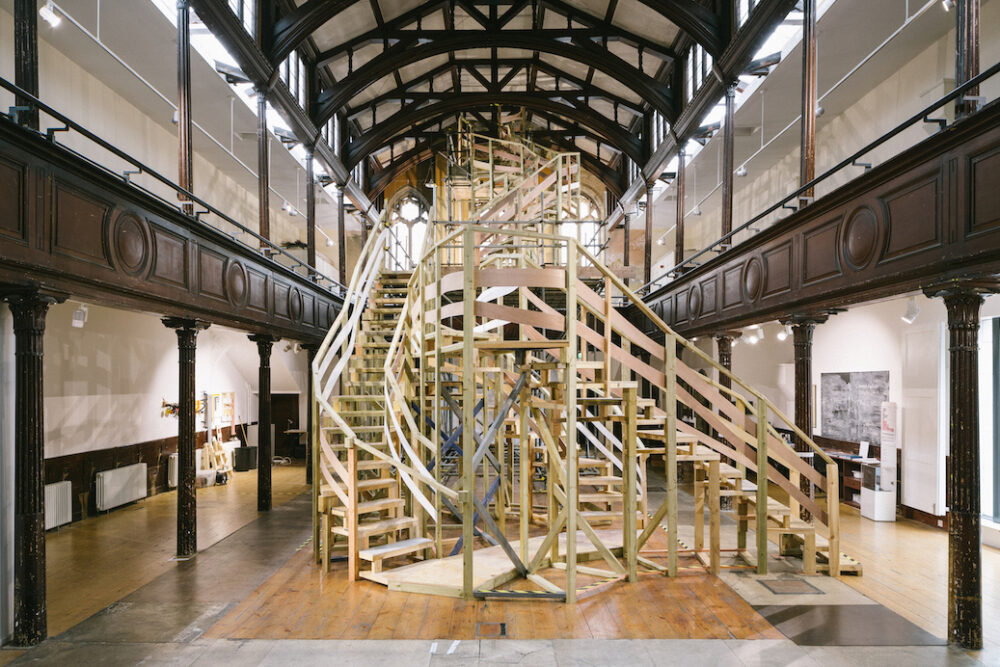 Working with recycled timber, she has built a meandering staircase that traversed three stories, allowing audiences to touch the roof of a church. Experimenting with foundry technologies, she developed a method for casting lava into contemporary forms. These projects stem from a deep engagement with materiality and a critical exploration of humanity’s relationship with both the natural and built environment. Themes such as transitions, viewpoints, illusions, aspiration, environmentalism, and anti-capitalism are interwoven throughout her practice.