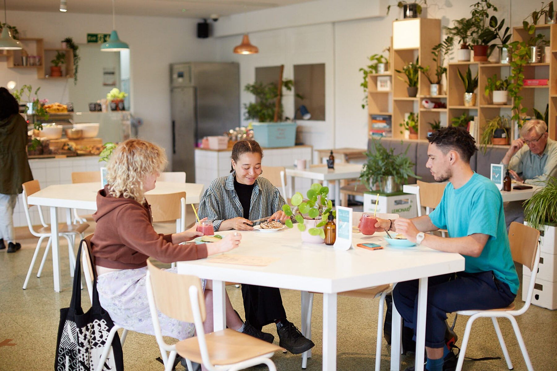 Our café has step-free access and a spacious layout in which we nurture a lively, community-focused space to work, relax and connect with the heart of Spike Island. The café is also dog-friendly.