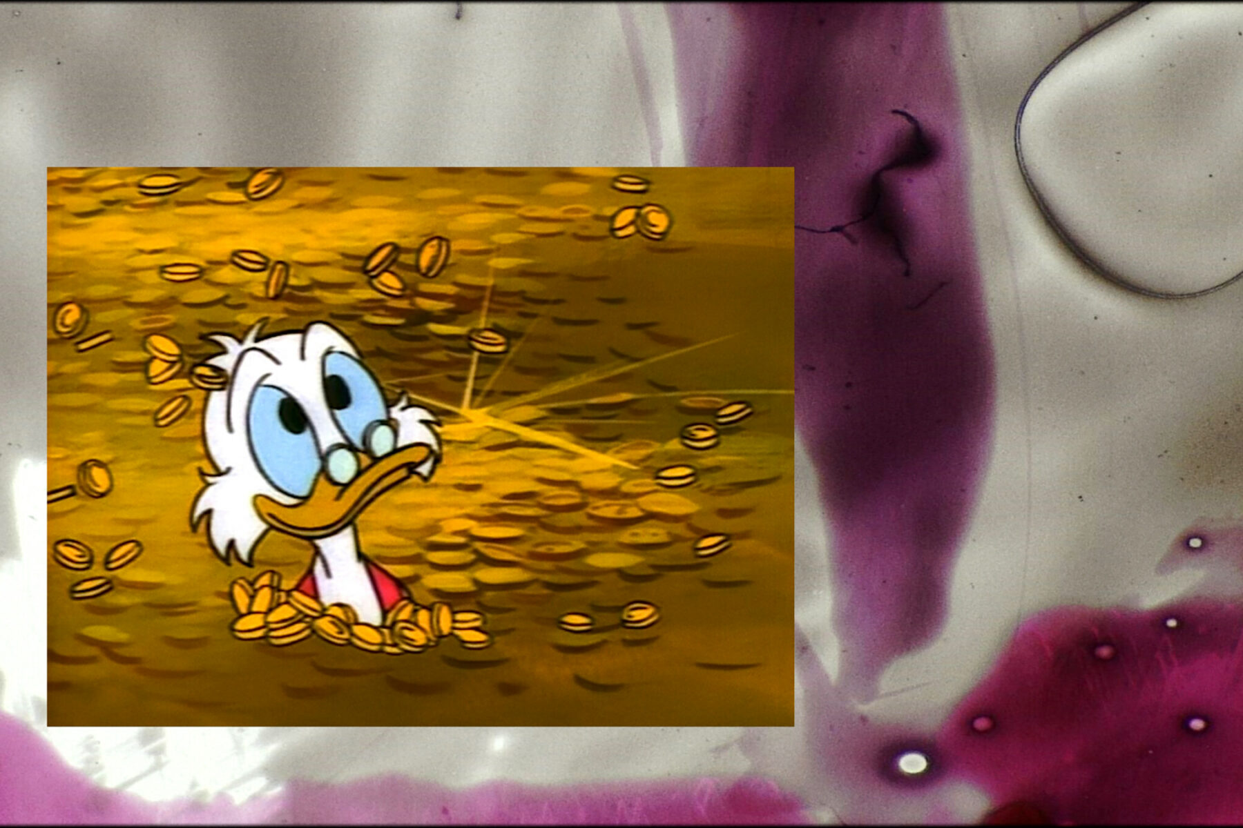 Made in collaboration with herbalist Rasheeqa Ahmad and financial services regulator Rachel Bardiger, Zaman’s film Alternative Economies relates the imperialist exploits of the Disney character Scrooge McDuck with the apparently radical yet deeply compromised promises of cryptocurrency. Between these two strands, possibilities for an alternative network of exchange and subsistence are sought.