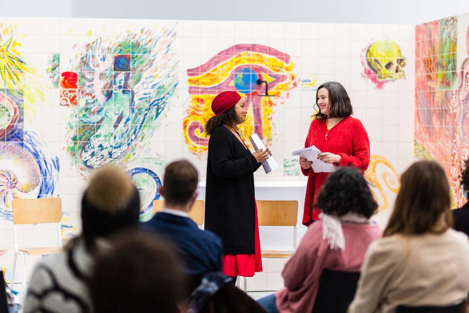 A special performative lecture with artist and writer Maria Christoforidou and exhibiting artist Lucy Stein. This event expanded on their ongoing conversations around esoteric culture, genius loci, and Jungian ideas of the anima/animus. Christoforidou and Stein borrow cues from Jean-Luc Godard’s 1968 film Sympathy for the Devil and reference the myths of Iphigenia and Hecate as they moved in and around Stein’s Wet Room installation.