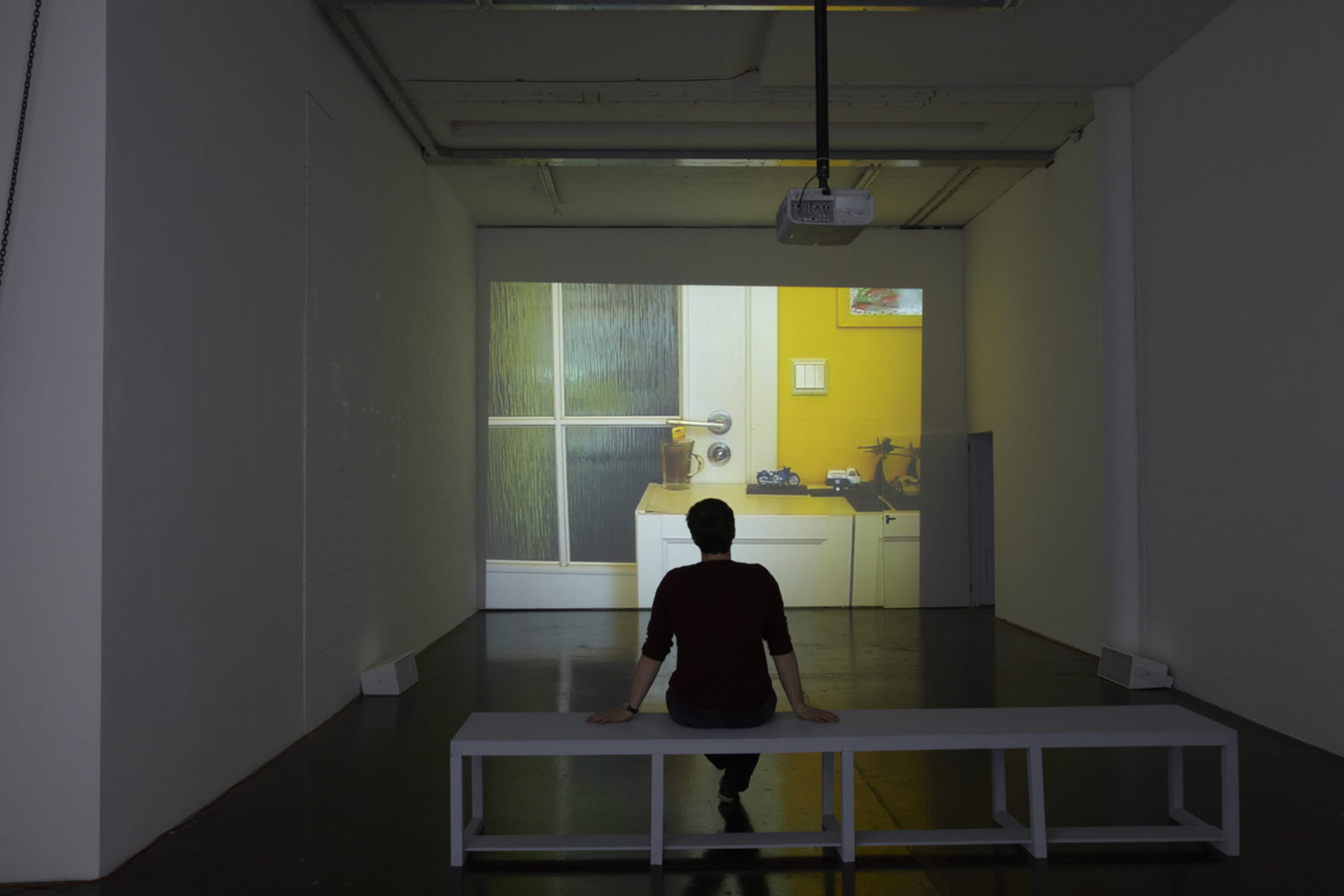 Spike Island presented the first UK solo show by Łódź-based artist Cezary Bodzianowski. Initially trained as a sculptor in both his native Poland and at the Royal Academy of Fine Arts in Antwerp, Bodzianowski has increasingly turned his practice to the creation of absurdist interventions into everyday settings. Such actions include camouflaging himself as foliage while standing beneath a tree or positioning himself, legs in the air, in the empty space below a staircase.
