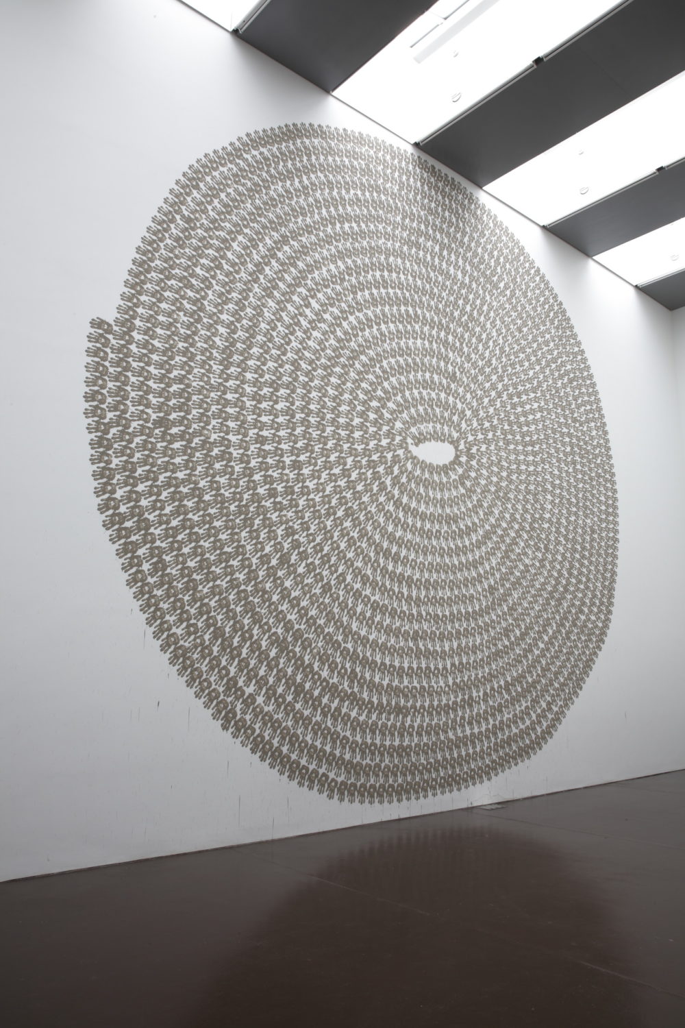 Bristol-born Richard Long last exhibited here in his home town in 2000 at the Royal West of England Academy. The River Avon is a key part of Long’s work: the vast majority of his wall drawings in private collections and museums around the world are made using Avon mud. For Spike Island’s main gallery, Long created two large scale mud drawings in his last show before a major survey of his life’s work at Tate Modern in 2009. These new wall drawings are a magnificent response to the gallery’s nine metre high ceiling, recently described by Richard Cork as ‘one of the most epic art spaces in Britain’ (Financial Times, 2007). To accompany this new work, Long selected an intimate text piece written by him in 1990 which was distributed to visitors as a free, limited edition poster work.