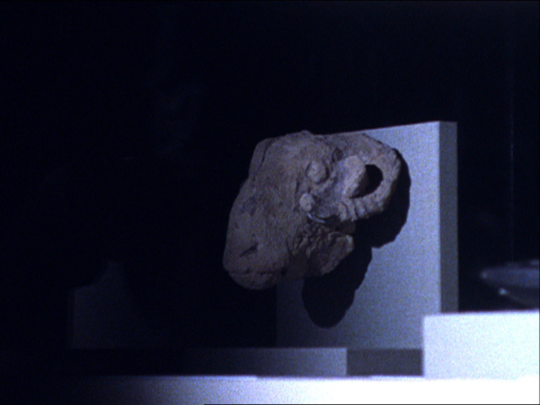 Nashashibi and Skaer filmed under the cover of darkness, documenting the Near Eastern, African and Oceanic collections of the legendary Metropolitan Museum of Art in New York. The flashing strobe light used in the filming allows the viewer to see the objects as if in animation. Disorientation tips the viewer from the logic dictated by the museum framework to one dictated by the artefacts, enabling a new and imagined response.