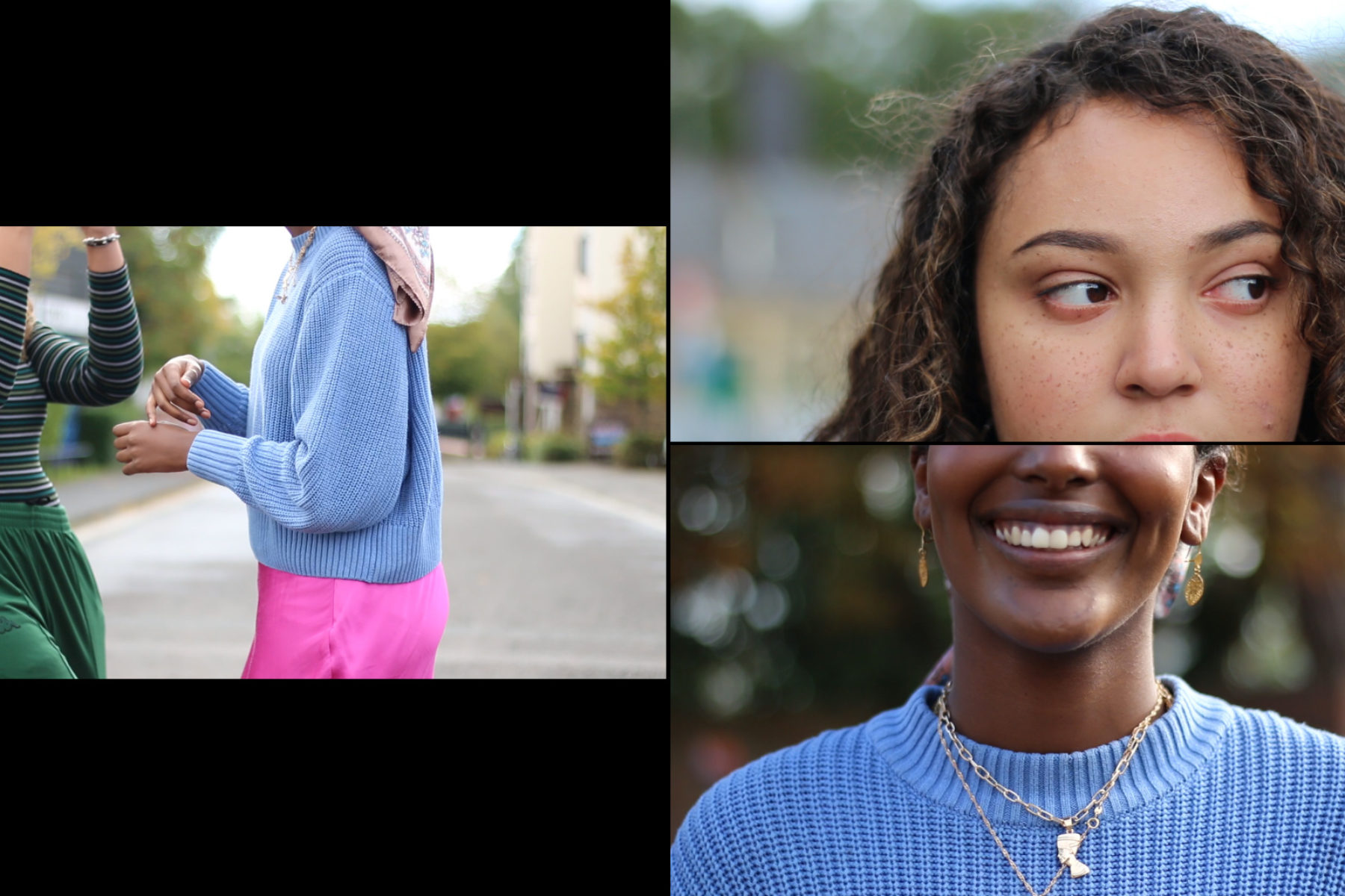 Shot on location in North Bristol, the resulting work, Under My Skin, is a triptych with a strong focus on the identity of young women as a counterpoint to Perretta’s film the destructors. It explores ideas of vulnerability and self-love, creating intimate portraits of personal experiences through spoken and visual poetry.
