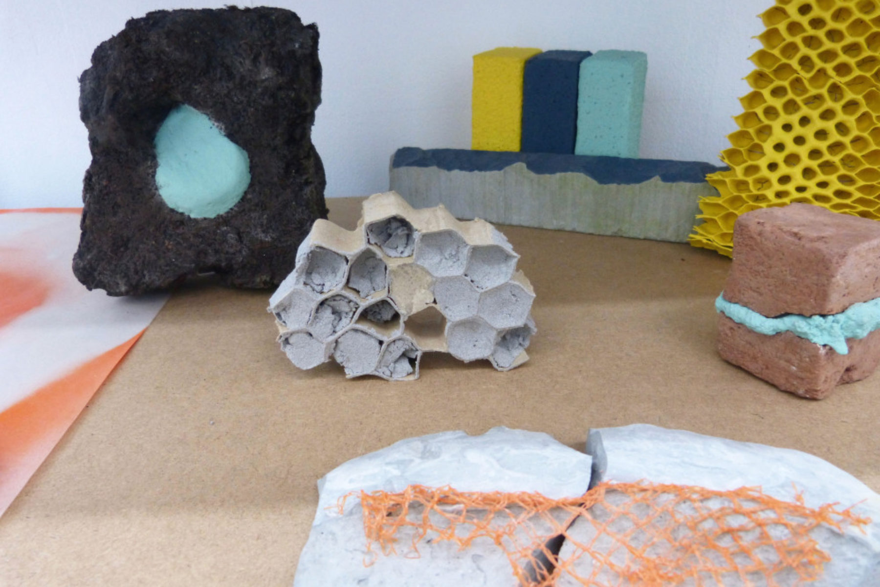 Geology meets DIY materials, found objects intermingle with handmade creations, natural materials merge with modern day detritus. Combining these materials and processes resulted in an abundance of individual objects, each leading into further objects to create a new community or ecosystem that is flexible, adaptive and fragile