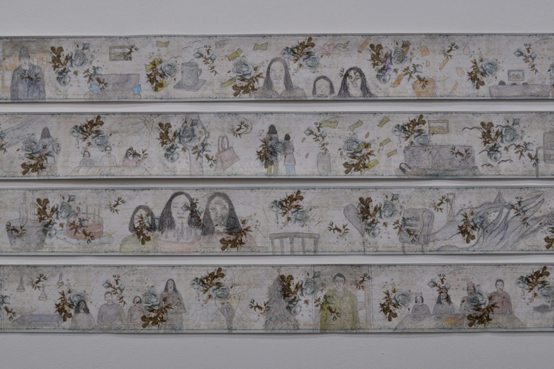 Rebecca Swindell’s exhibition Surface Stories was an exploration of drawn narratives on a variety of different surfaces and found objects.