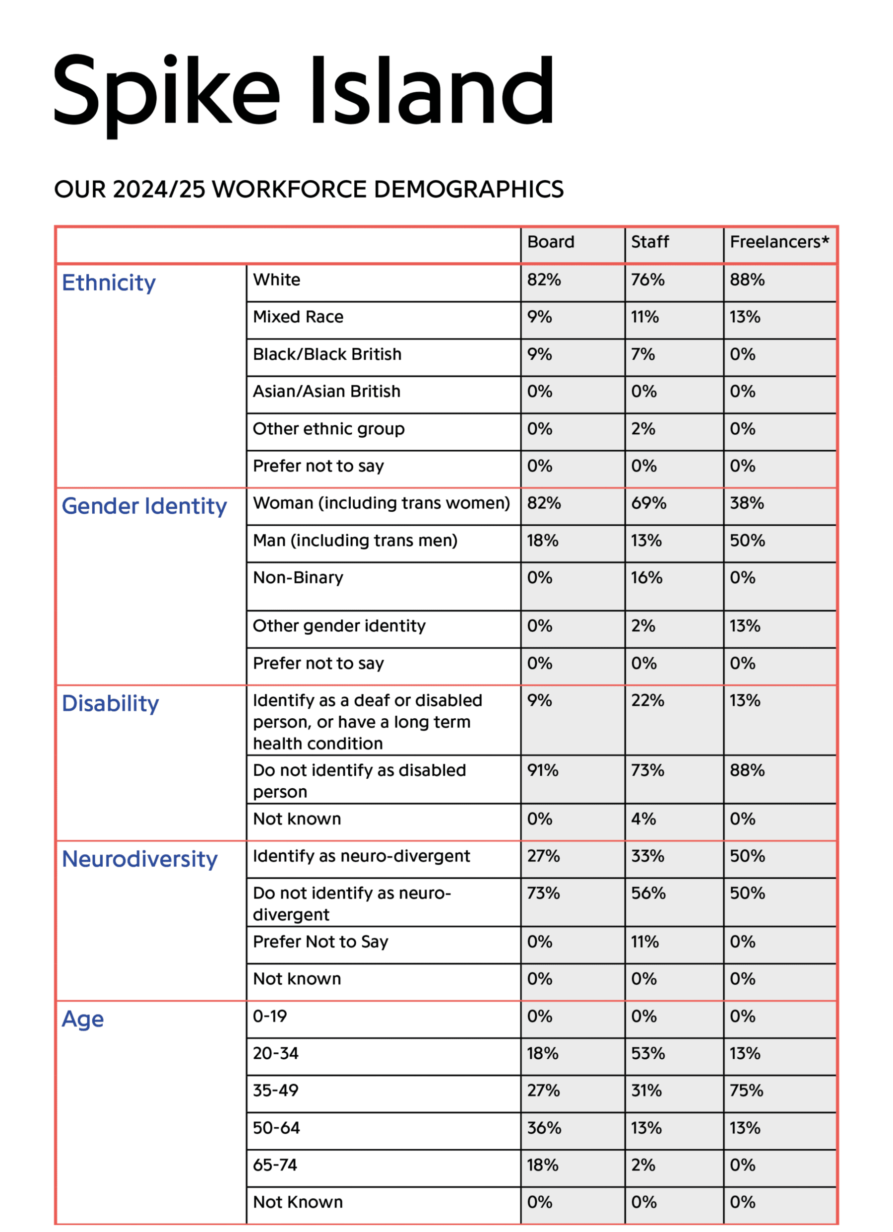 The work we do at Spike Island benefits greatly from the range of perspectives and skills that having a diverse team brings. We believe our staff should reflect the variety of identities and experiences in Bristol, and we are actively engaging in ways to make our recruitment processes more inclusive for all.